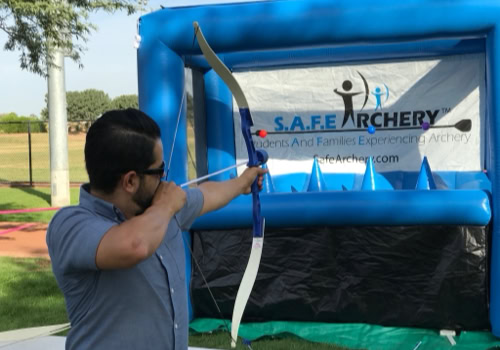 We like to think of it as dodge ball with a bow and arrow. You can shoot your friends, family, or co-workers safely with our foam tipped arrows! It is safe and pain free fun for all ages.