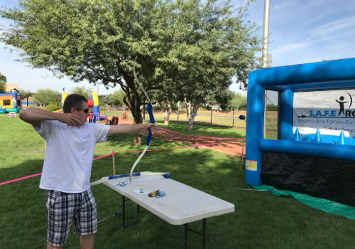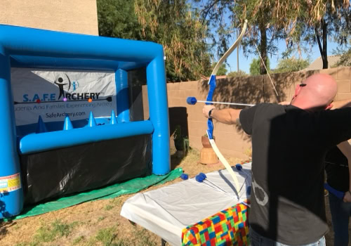 Anyone from 7 to 107 will enjoy target shooting at our HoverBall targets. We provide this inflatable with floating ball targets for learning and having fun. The big foam tipped arrows make it safe for everyone to enjoy.