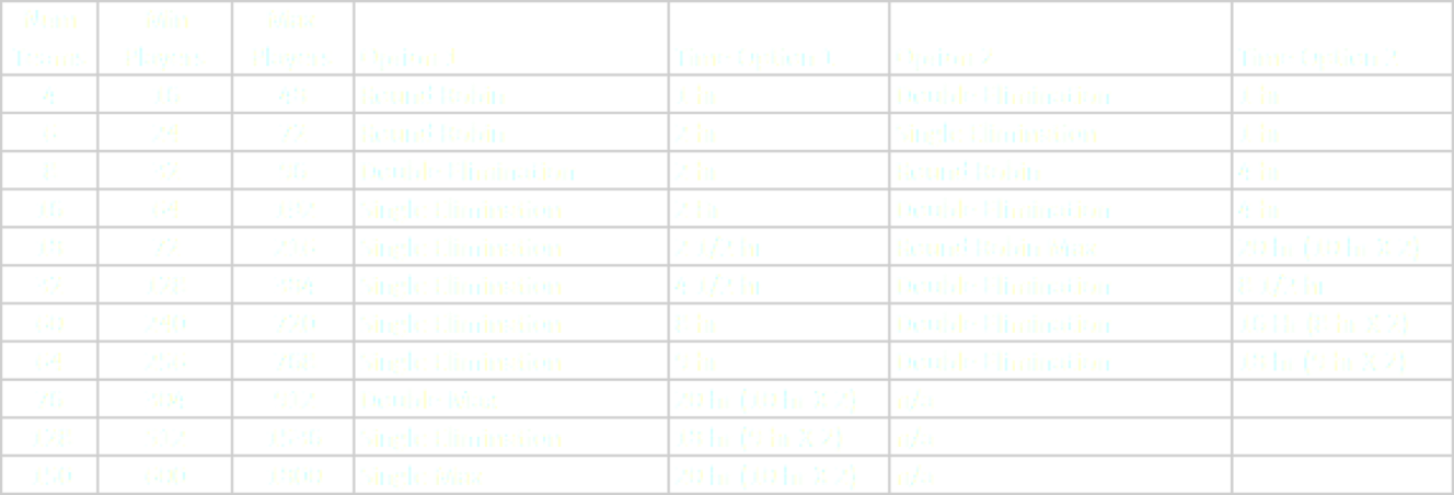 We will provide a bracket page that teams can view on their phones or on our screens. Click here for an example.